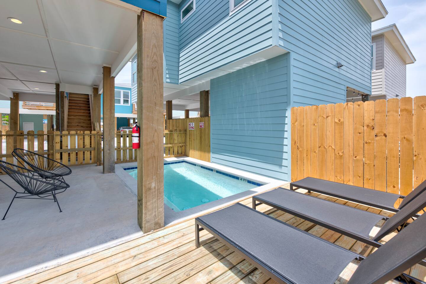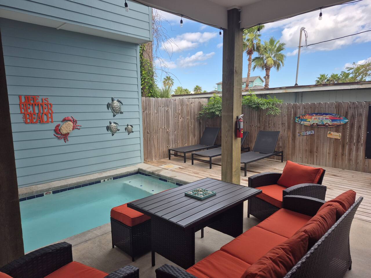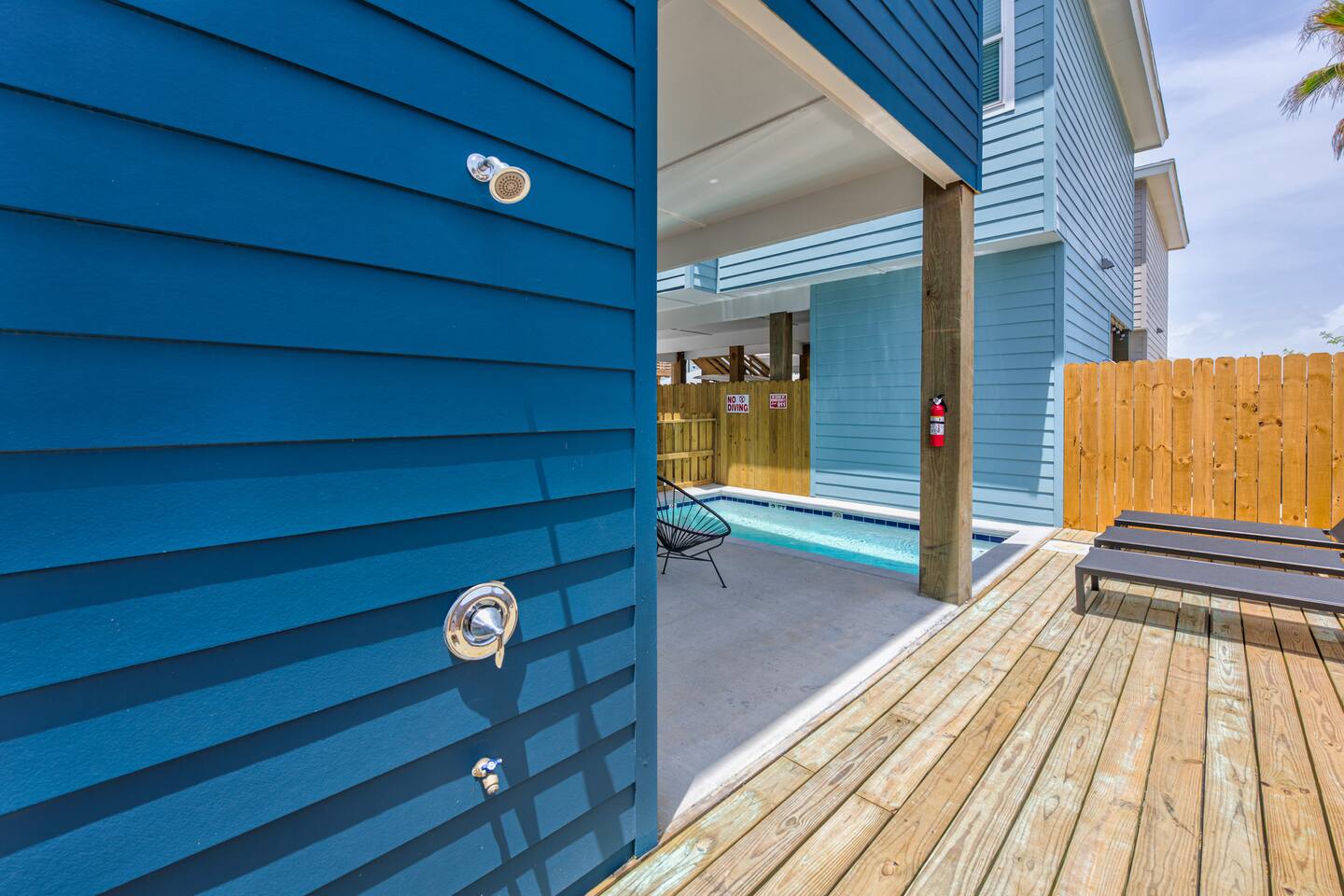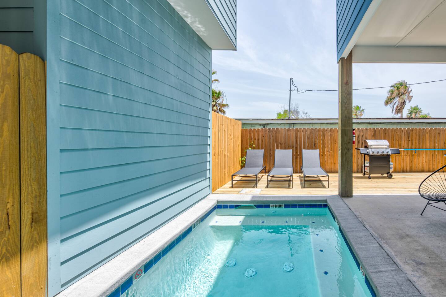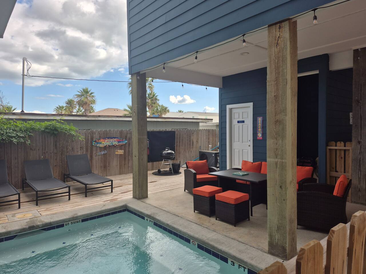 Welcome to The Blue Bungalow, your modern 3-bedroom, 2.5-bath retreat in Port Aransas! Designed with a bright, open-concept layout and stylish, clean décor, this cozy 850-square-foot home is the perfect setting for your beach getaway for up to six guests. Relax and unwind in a space filled with natural light and thoughtful touches. While we embrace simple beach living without closets, you'll find plenty of hooks and wall space to keep your essentials tidy and accessible. Your private outdoor oasis awaits in the fully fenced backyard, featuring: A heated cocktail pool to take the chill off (heating available upon request from March-October). A refreshing outdoor shower, perfect for rinsing off after a day at the beach.